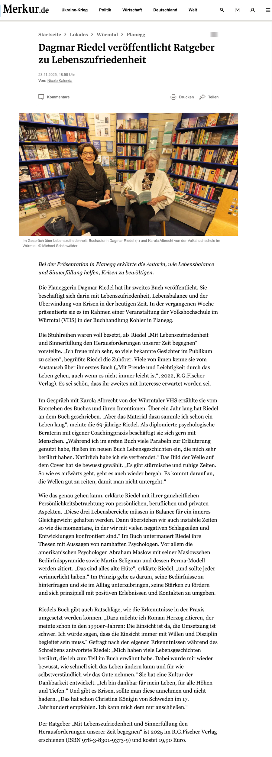 Lesung vom 19.11.2025 in der Buchhandlung Kohler in Planegg